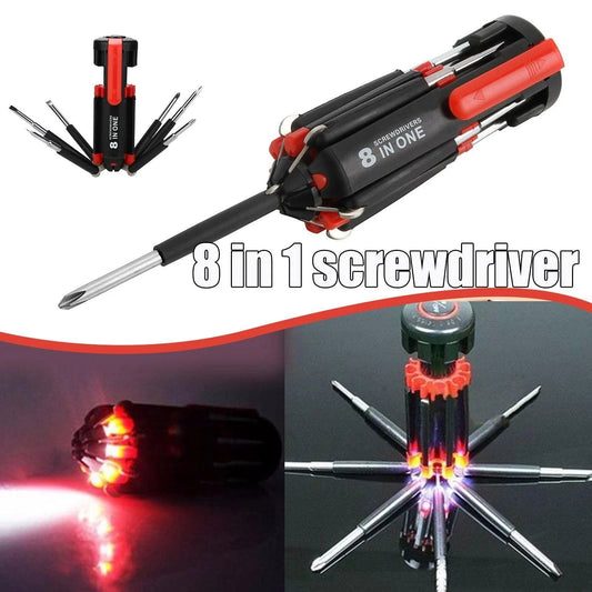 CACCIAVITE 8 IN 1 SET CACCIAVITI MULTIUSO CON LUCE TORCIA 6 LED