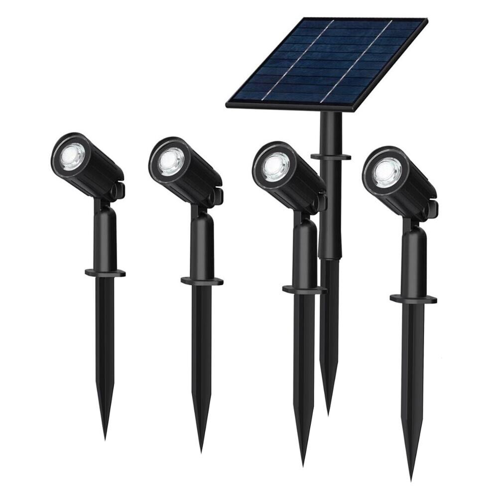 Illuminazione efficiente: questa serie di 4 faretti da 10 watt con 400 lumen garantisce un'illuminazione ottimale grazie al pannello solare.