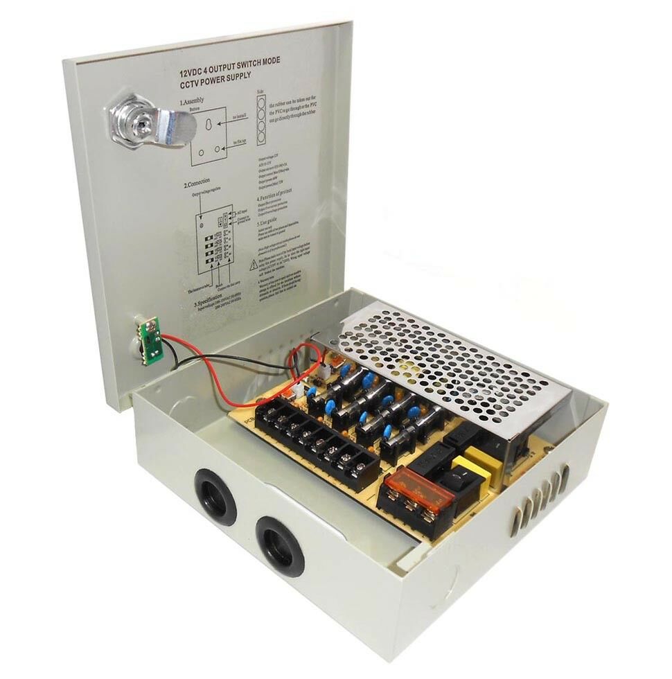 ALIMENTATORE STABILIZZATO BOX 4 CANALI USCITE ALIMENTAZIONE X TELECAMERA