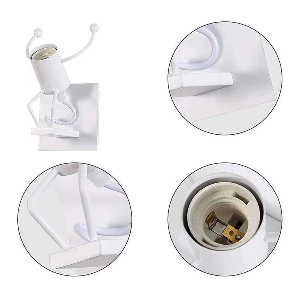 APPLIQUE DA PARETE A FORMA DI OMINO LAMPADA DECORATIVA IN METALLO BIANCO E27
