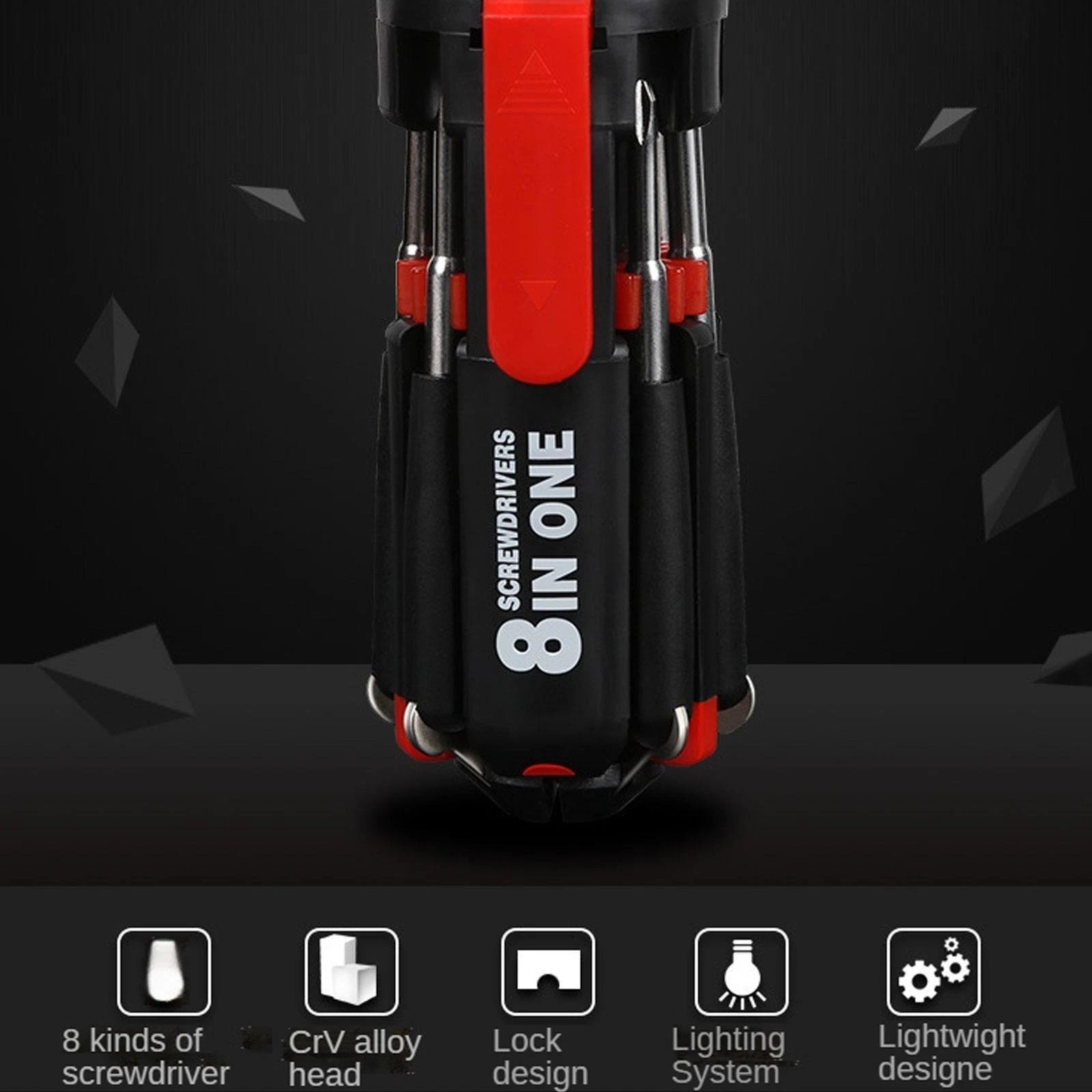 CACCIAVITE 8 IN 1 SET CACCIAVITI MULTIUSO CON LUCE TORCIA 6 LED