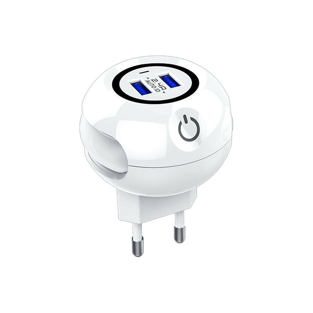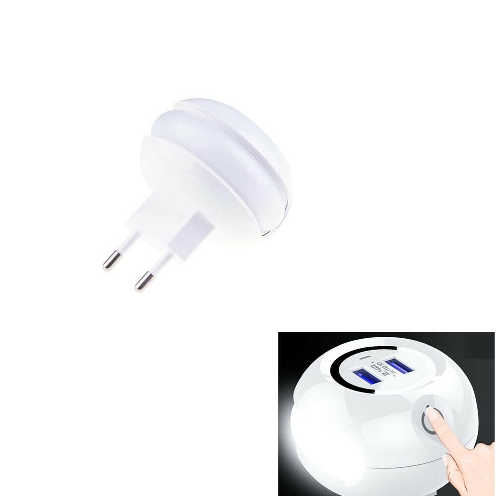 CARICABATTERIE 2 PORTA USB LAMPADA LED LUCE NOTTURNA TASTO TOUCH CARICA BATTERIA