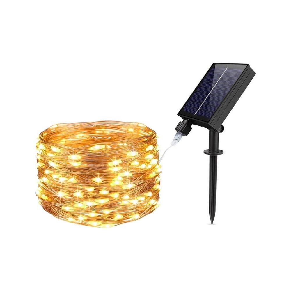 CATENA LUMINOSA 30 MT LUCI NATALIZI PANNELLO SOLARE MINILUCCIOLA 300 LED CALDA