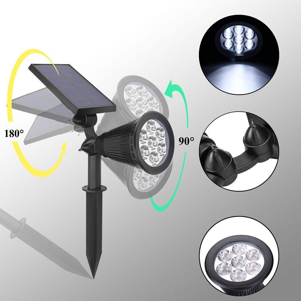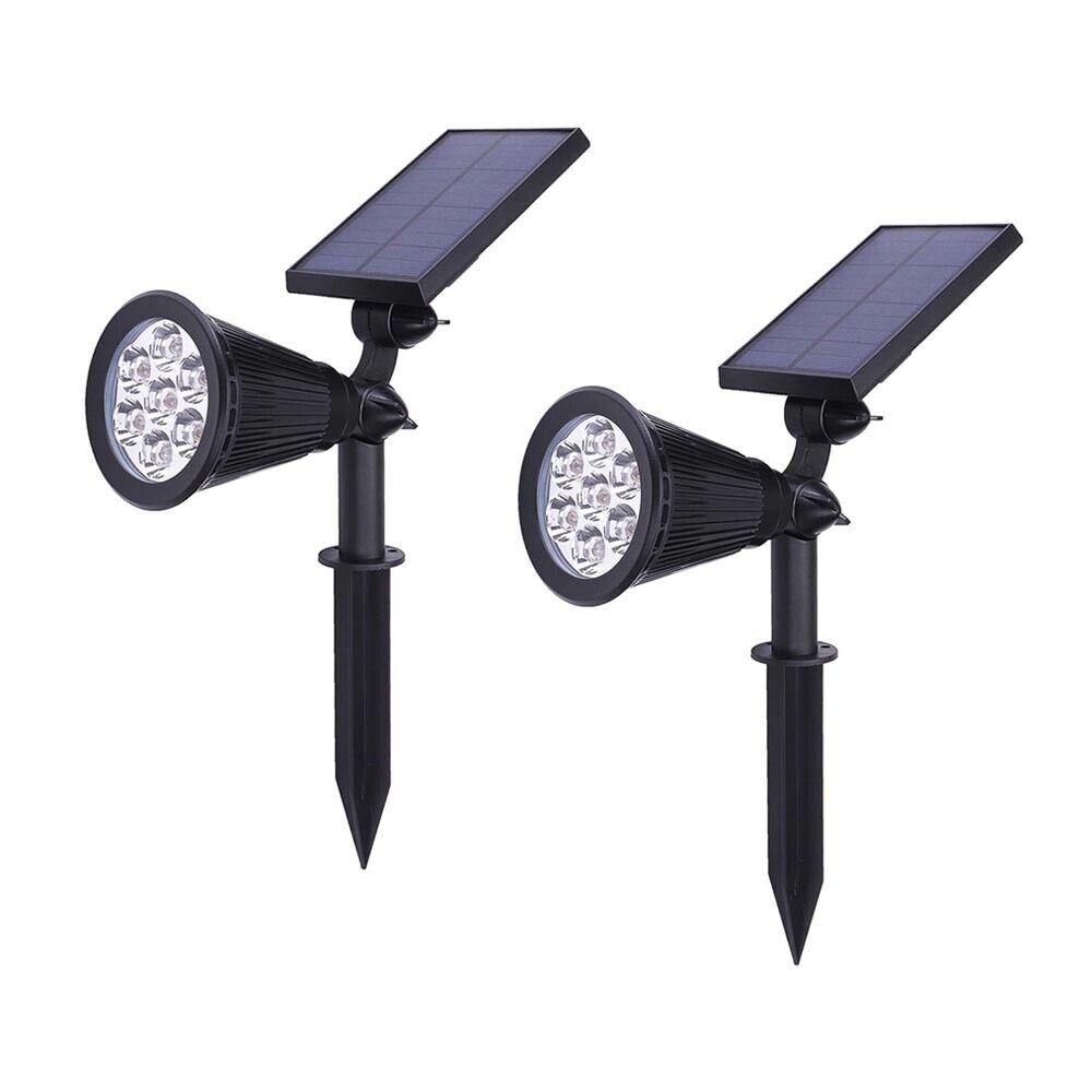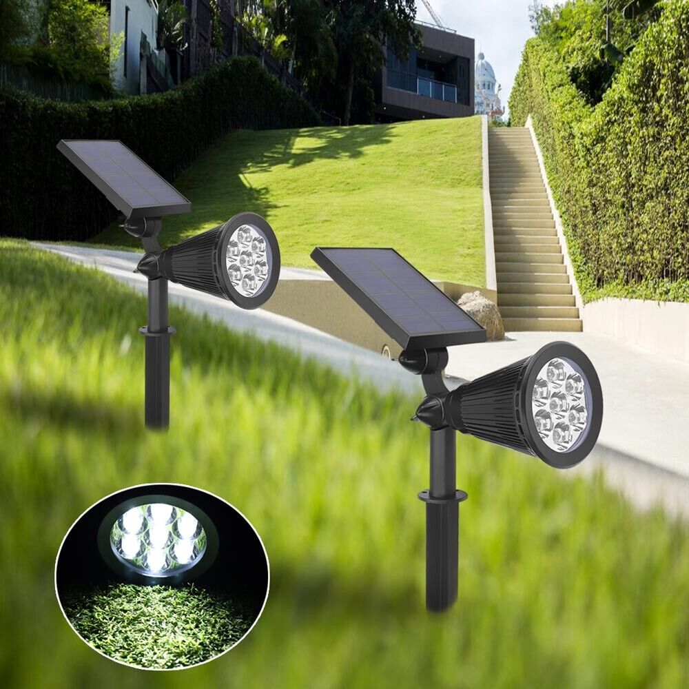 2 FARI 7 LED CON PANNELLO SOLARE RICARICABILE FARETTO LUCE BIANCA DA GIARDINO