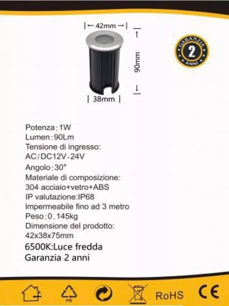 Grazie alla nuova tecnologia led che garantisce la massima efficienza, impermeabile IP68 adatto per scale, vialetti, giardino, fontane, piscina, passo carrabile ecc.
