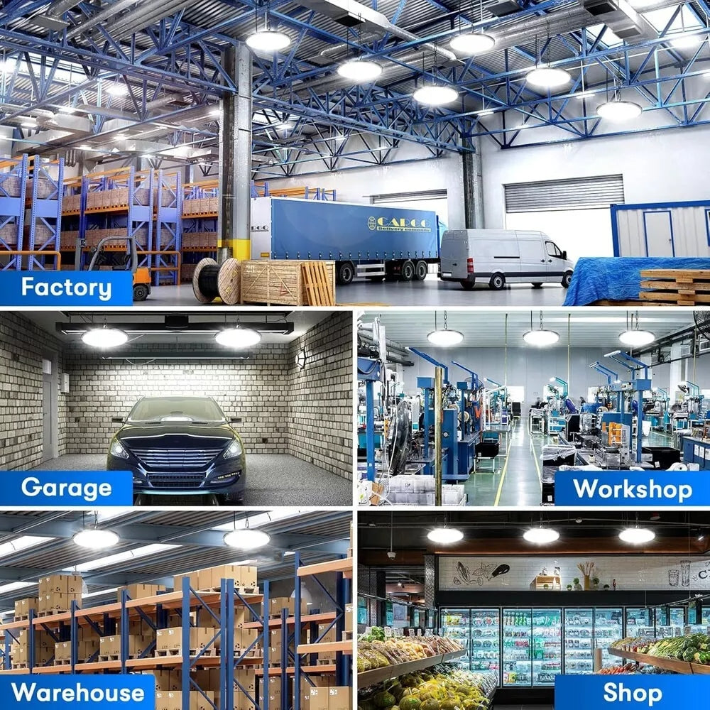 Applicazioni: officine, magazzini, capannoni industriali, supermercati, parcheggi sotterranei, stabilimenti, grandi magazzini, distributori di benzina, centri sportivi, fabbriche, espositive, palestre e altri luoghi con soffitti particolarmente elevati, dove è necessaria un'illuminazione di qualità per migliorare il comfort visivo e la sicurezza sul lavoro.