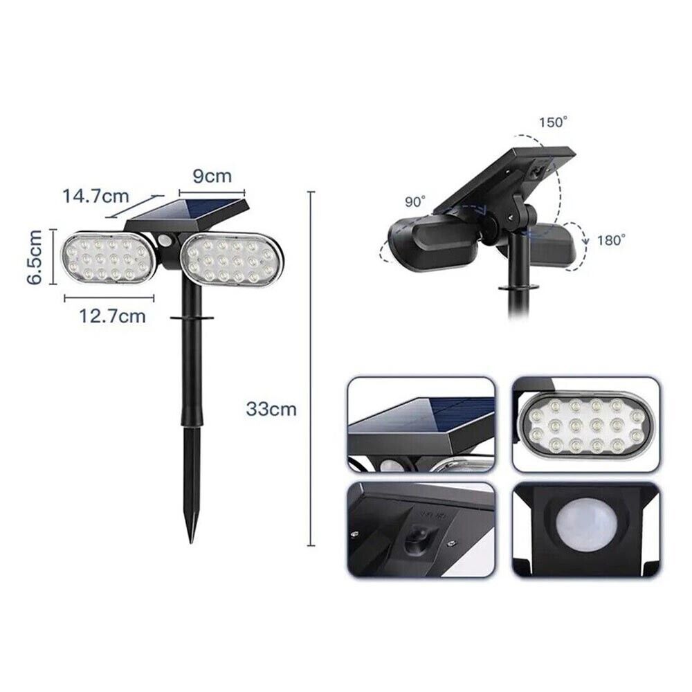 FARO PANNELLO SOLARE SENSORE CREPUSCOLARE FARETTO 32 LED LUCE BIANCA PICCHETTO