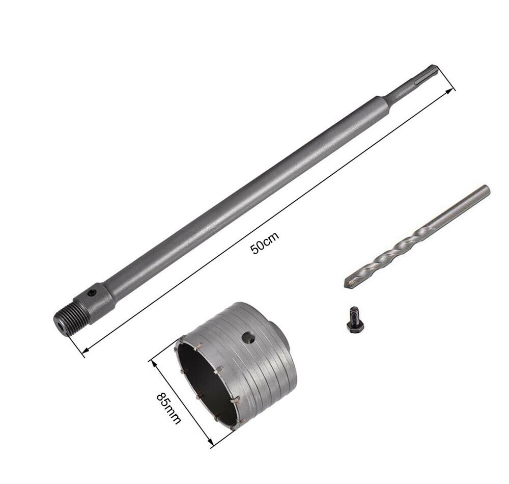 Asta completa di fresa carotatrice corona a tazza diametro 85 mm, tutto in acciaio con innesto SDS-PLUS.