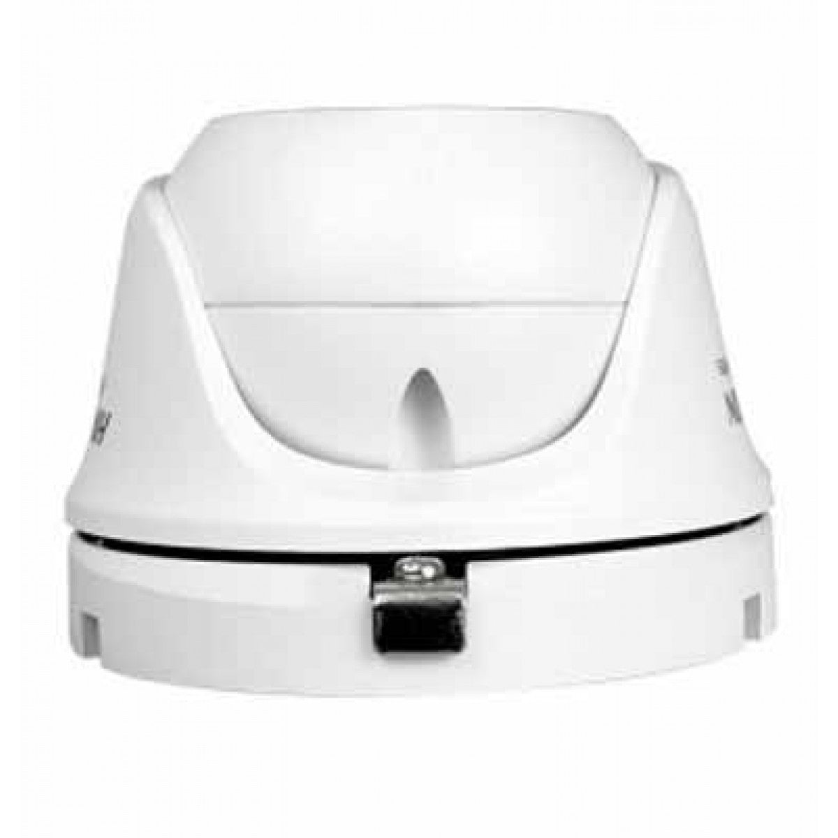 Telecamera Dome dalla struttura in metallo di colore bianco , installabile in ambienti interni o esterni (Waterproof IP66) con illuminatore Infrarosso con portata REALE fino a 20M di visione notturna. La forma a cupola rendono il prodotto installabile a soffitto o a parete.