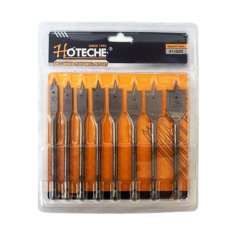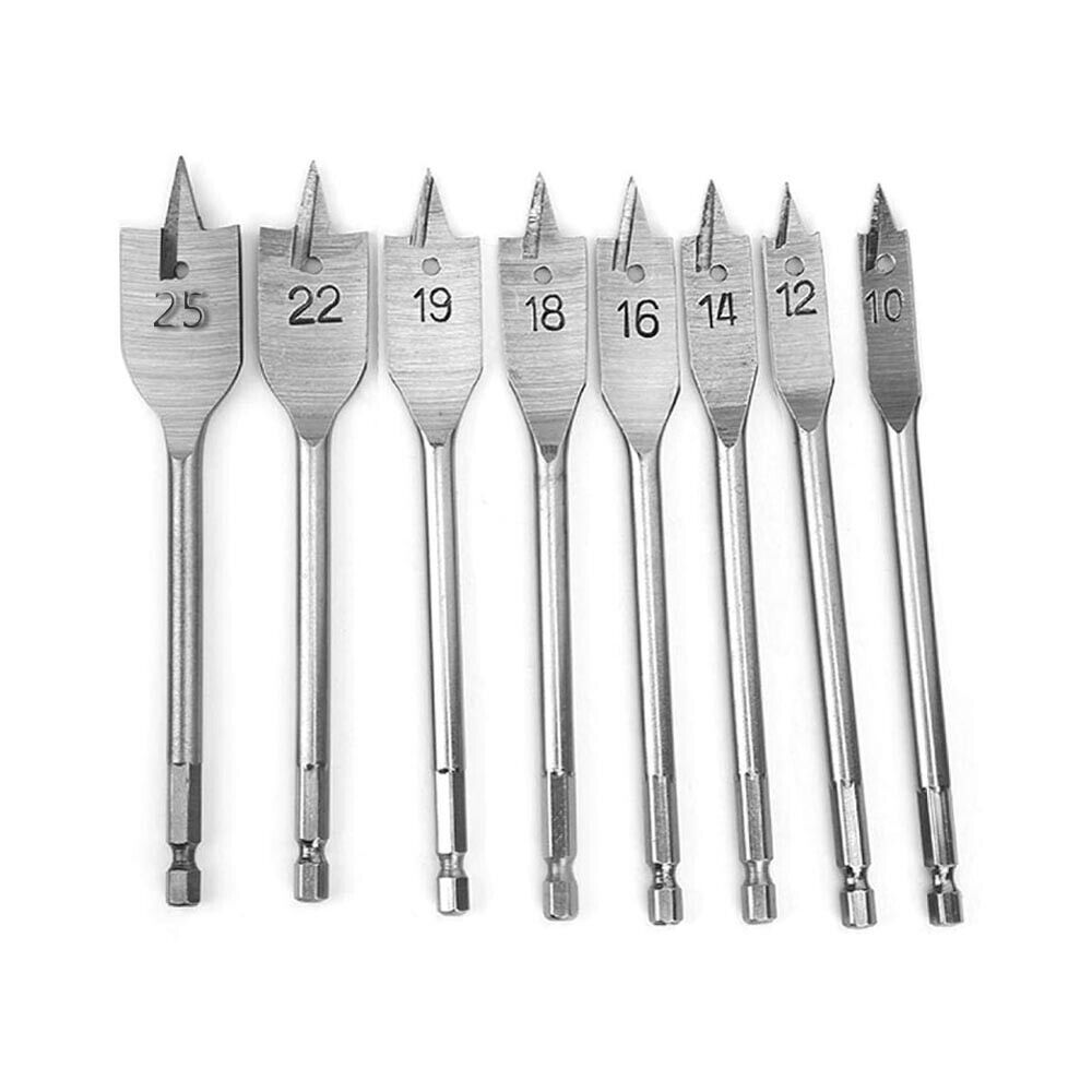 KIT 8 MECCHIE PER LEGNO PUNTE PIATTE PALETTA PUNTA ATTACCO DA TRAPANO 1/4"