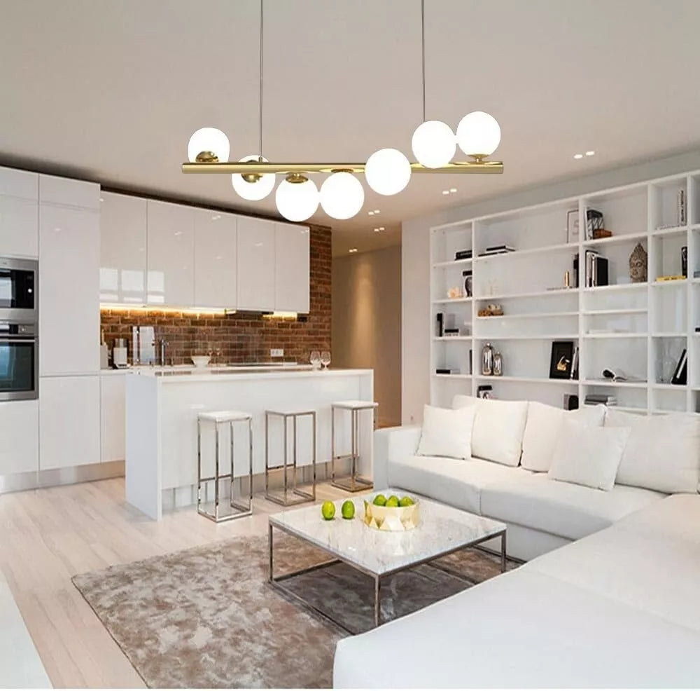 Grazie al numero di sfere, questo lampadario può essere adattato a spazi di diverse dimensioni e illuminare in modo efficace diverse zone.