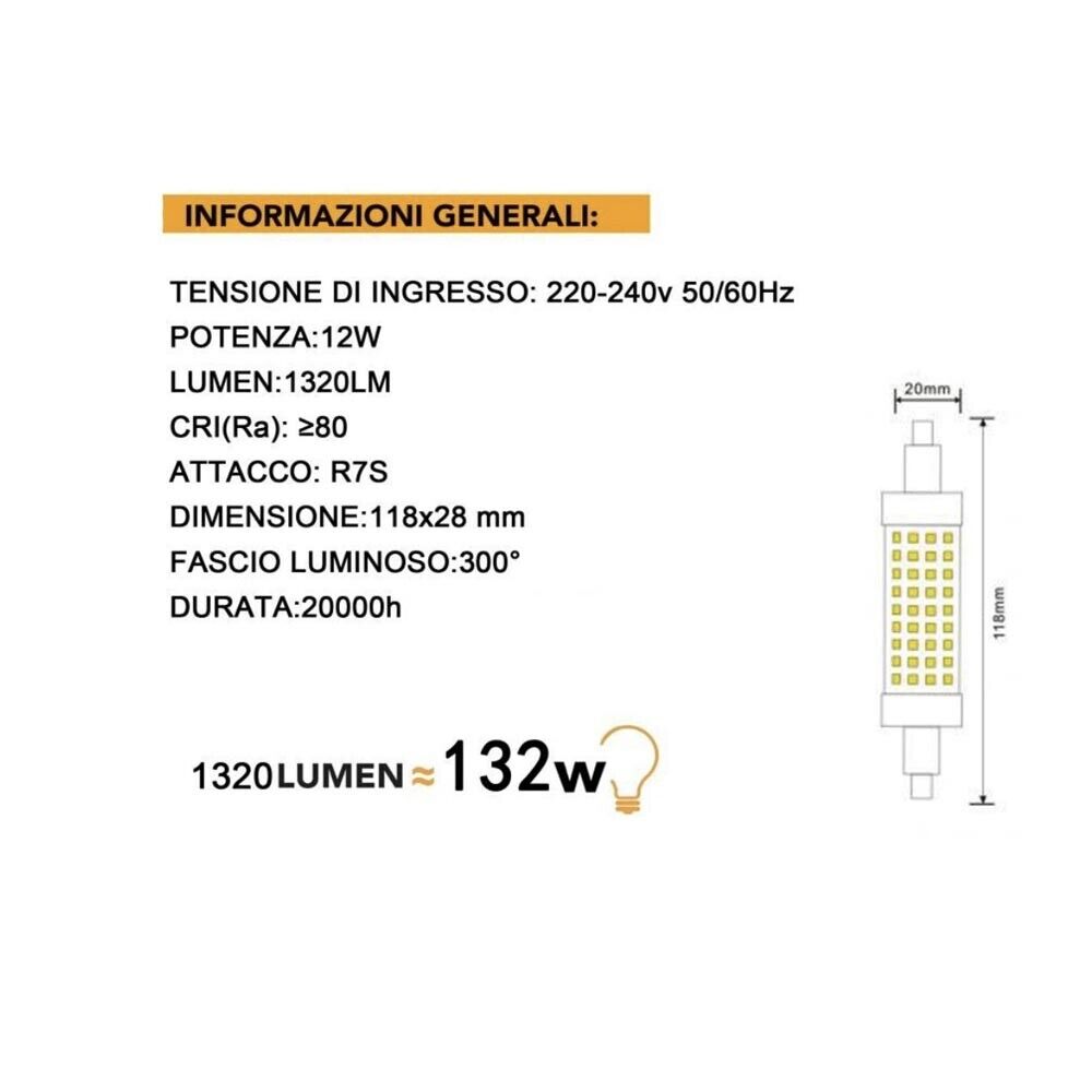 LAMPADINA LED LUCE NATURALE ATTACCO R7S 12 WATT LAMPADA RICAMBIO PER FARO 4000K