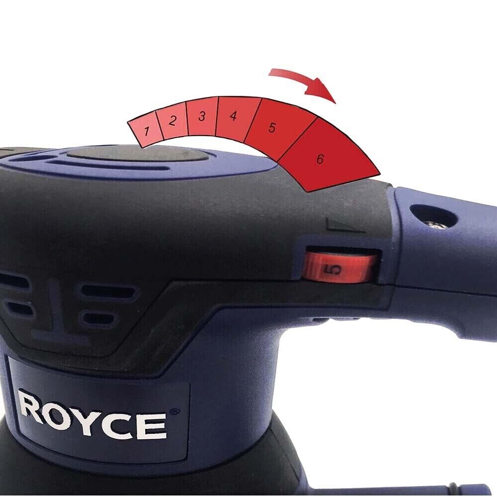 Levigatrice orbitale manuale elettrica ad azione combinata orbitale e rotatoria. Motore 350 watt ad azione orbita casuale per una finitura liscia, 125 mm di diametro base a fissaggio strappo. Completa di sacchetto per aspirazione di polveri, che garantisce l'area di lavoro pulita. Design compatto e leggero con impugnatura ergonomica e morbida per il maggior controllo e il comfort.