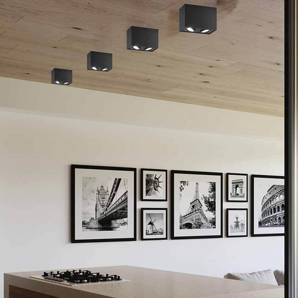 Applique da soffitto con doppio diffusore un elemento moderno ed essenziale in linea con le attuali tendenze nel design di interni moderni.