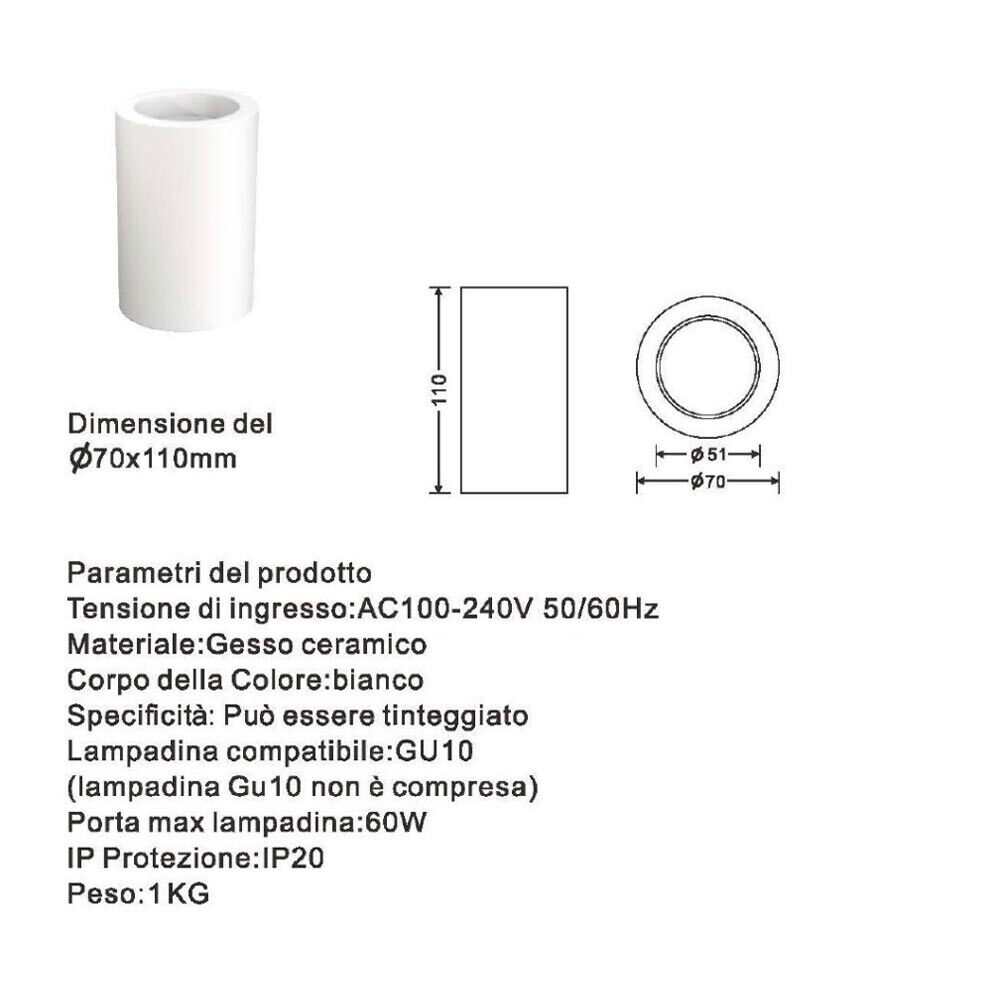 PORTAFARETTO DA SOFFITTO IN GESSO ATTACCO GU10 PORTA FARETTO A CILINDRO BIANCO