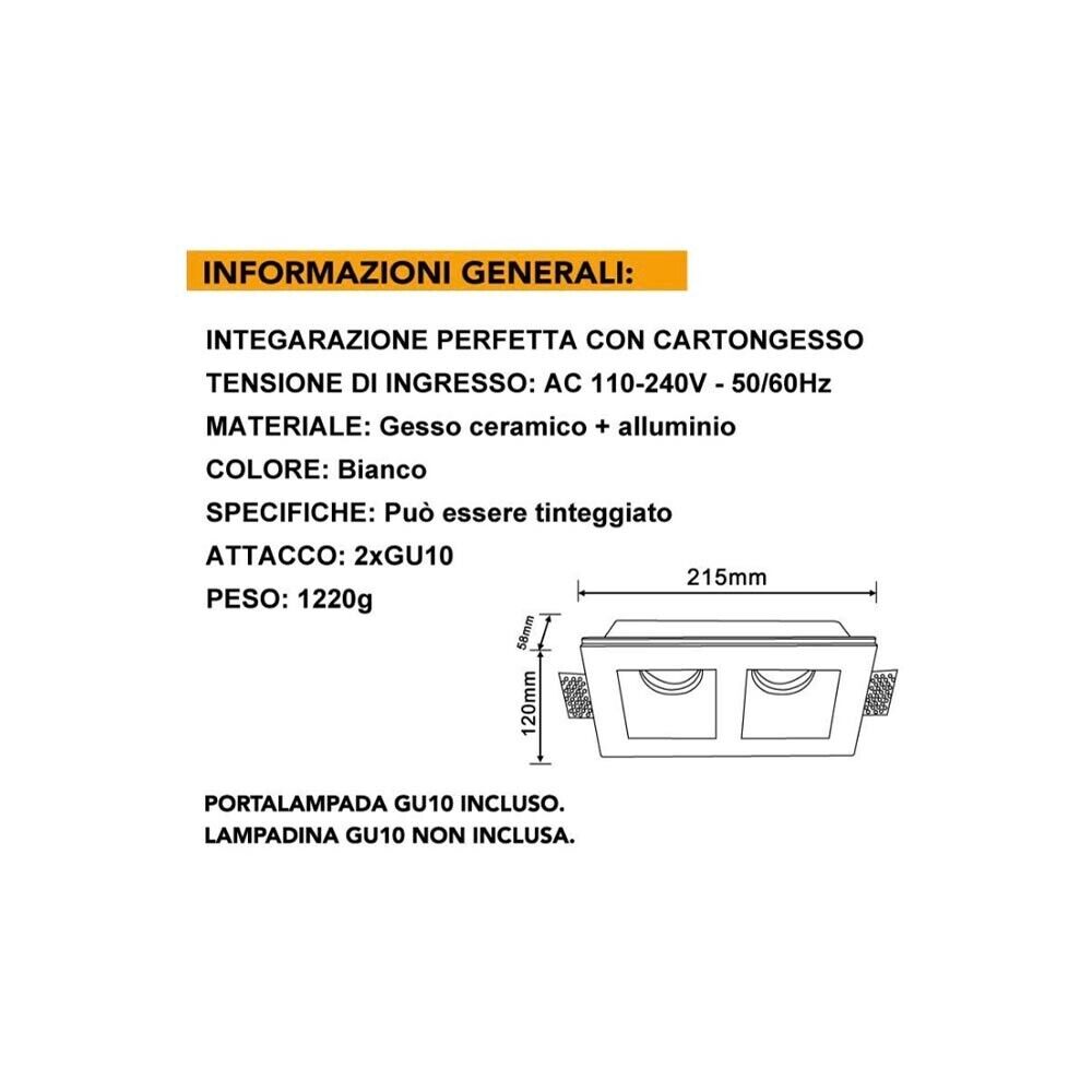 PORTAFARETTO INCASSO IN GESSO SCOMPARSA DOPPIO DIFFUSORE QUADRATO GU10 GS24