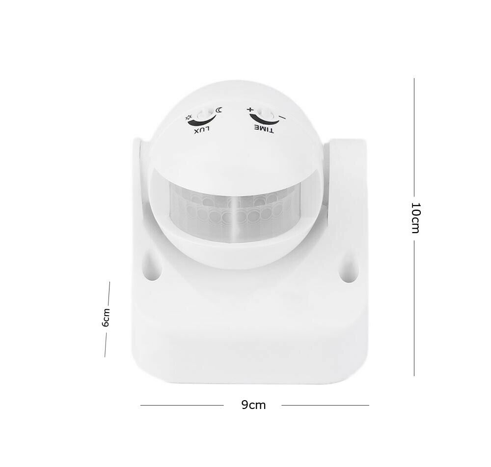 SENSORE RILEVA MOVIMENTO AD INFRAROSSI PIR CREPUSCOLARE RILEVATORE 180°