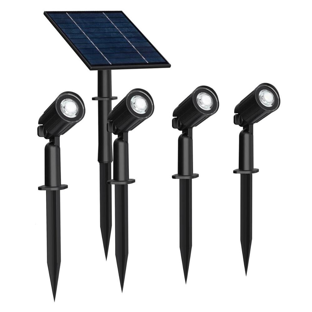Illuminazione efficiente: questa serie di 4 faretti da 10 watt con 400 lumen garantisce un'illuminazione ottimale grazie al pannello solare.