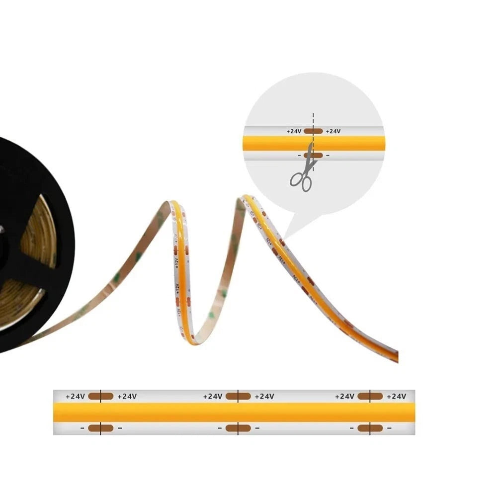 Striscia flessibile composta da un solo led cob ultra luminoso per l'illuminazione di ambienti interni da inserire in profili di alluminio.