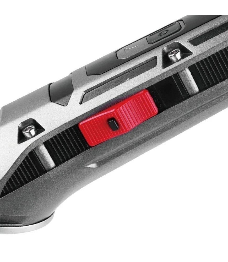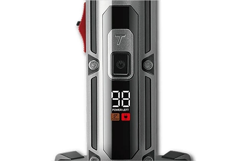 Display LCD e Autonomia Potenziata: Il display digitale LCD mostra l'autonomia residua in percentuale. Funzionamento a doppia velocità e batteria Li-ion da 2500 mAh ad alta autonomia. Include una base con cavo di ricarica USB.