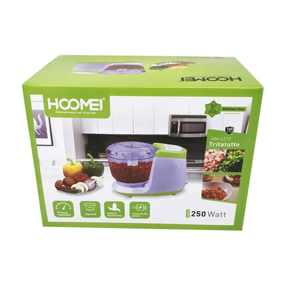 Il tritatutto sminuzza e trita alimenti freschi e secchi in modo semplice e veloce. Si attiva con la pressione di un pulsante a 2 velocità . Perfetto per macinare la carne, tritare gli aromi come: cipolla, aglio, prezzemolo e spezie varie, pesto, salsa tonnata, adatto anche per tritare il cioccolato e frutta secca. Tritatutto è dotato di doppio dispositivo di sicurezza nella base del contenitore e negli incastri del coperchio.